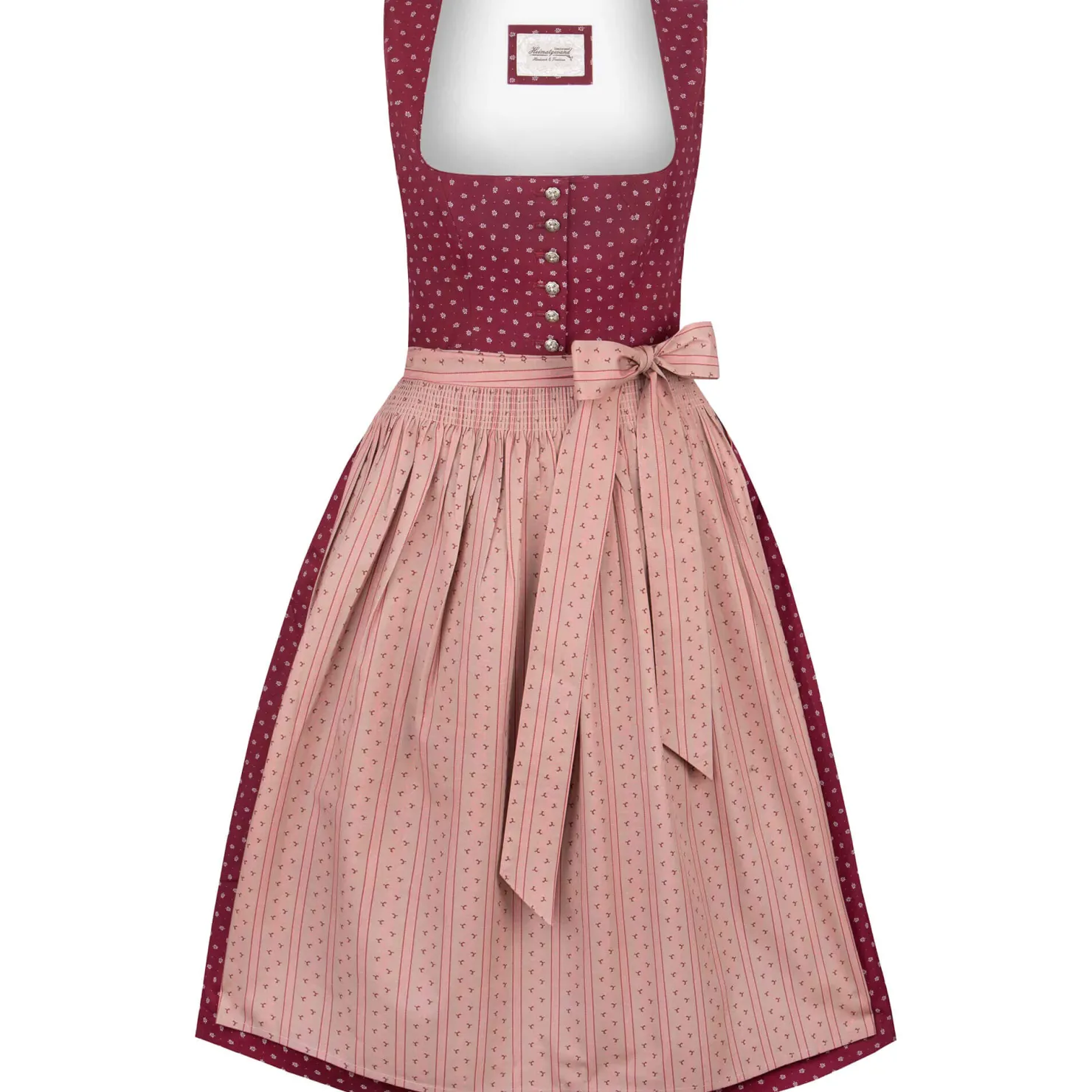 Tauchen Sie ein in die Welt traditioneller Eleganz mit unserem pflegeleichten Baumwoll-Dirndl in der edlen Farbe Bordeaux. Dieses zauberhafte Dirndl besticht durch sein romantisches, blumiges Allover-Muster, das jedem Anlass eine frische, feminine Note verleiht.