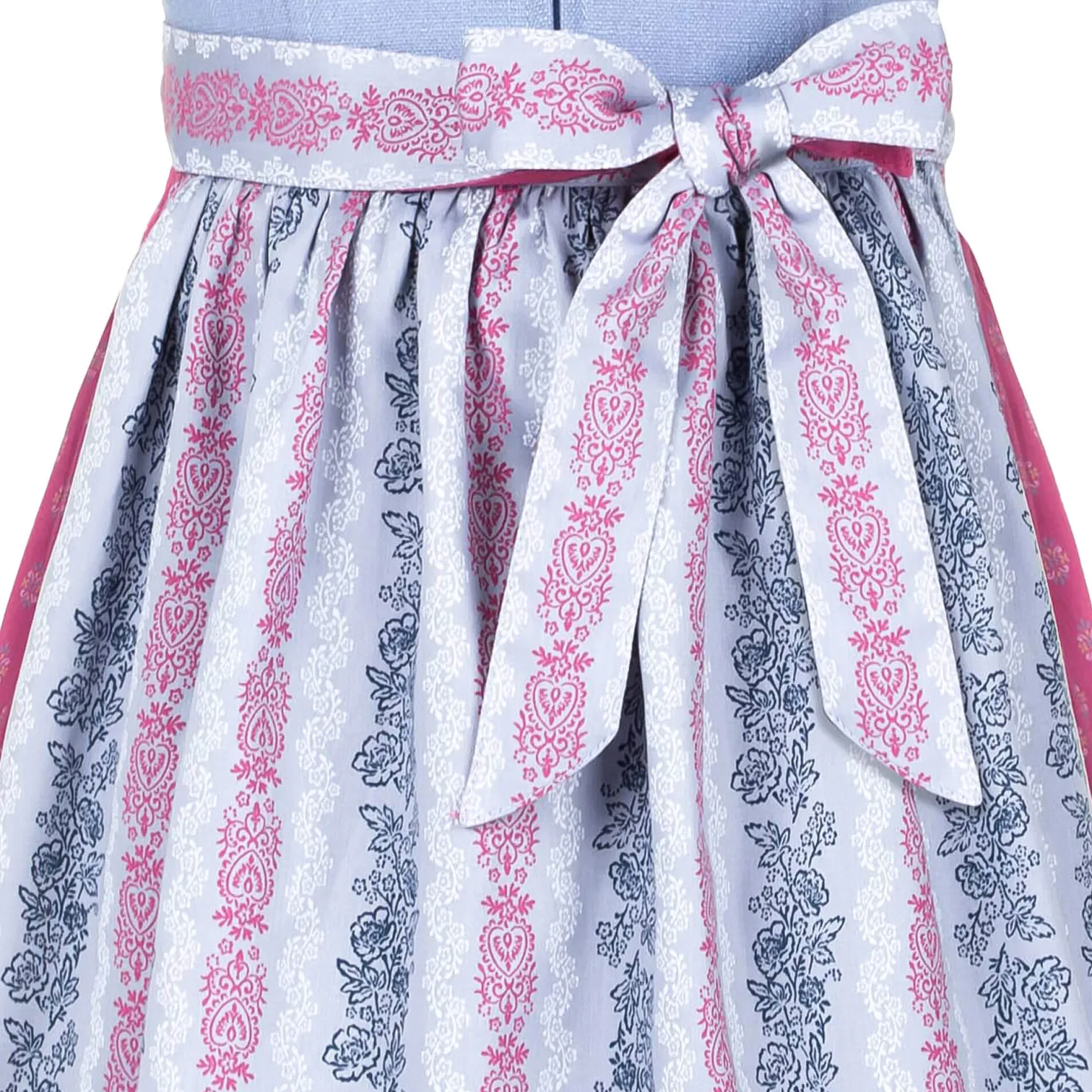 Dieses pflegeleichte Dirndl aus Baumwolle ist perfekt für modebewusste Mädchen. Das zarte Hellblau wird durch kräftiges Pink aufgefrischt und harmoniert wunderbar mit der gemusterten Schürze. Ein praktischer Reißverschluss vorne und ein runder Ausschnitt sorgen für angenehmen Tragekomfort und einen modernen Look.Ideal für festliche Anlässe oder einfach nur, um sich schick zu fühlen!