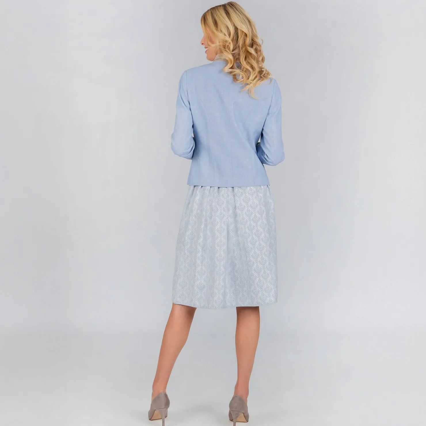 Die helle Damen Trachtenjacke „Giulietta“ in einem helleren blau begeistert mit traditionellem Charme und raffinierten Details. Mit praktischen Einschubtaschen und einer schlanken Silhouette ist sie ideal für Jeans oder Rock.