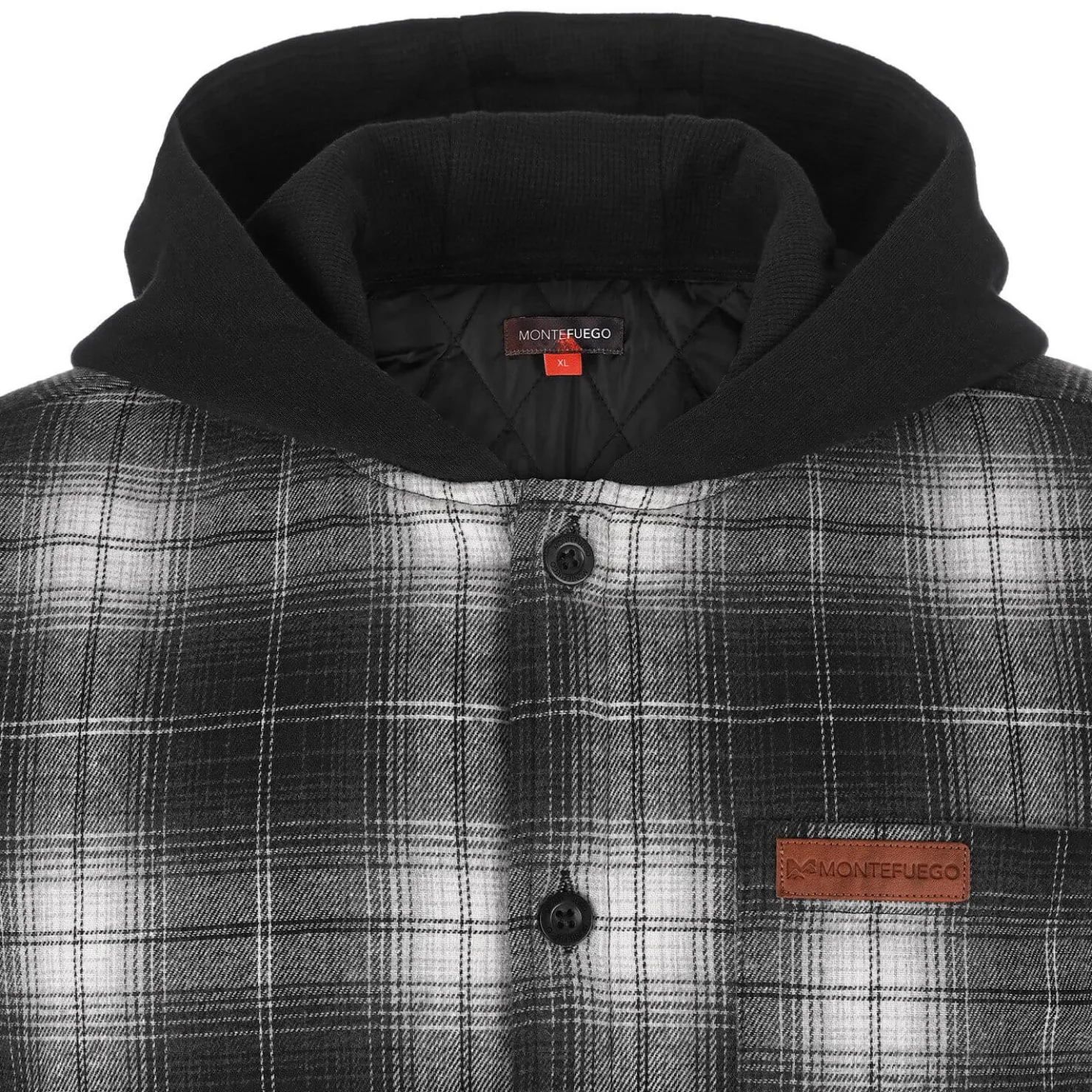 Perfekt für kalte Wintertage ist die gepolsterte Herren-Flanelljacke im modernen Schwarz-Weiß-Karo-Muster. Sie ist leicht, warm und atmungsaktiv und bietet hohen Tragekomfort. Die Kapuze, die Brusttasche und die praktische Knopfleiste sorgen für zusätzlichen Schutz und Funktionalität.