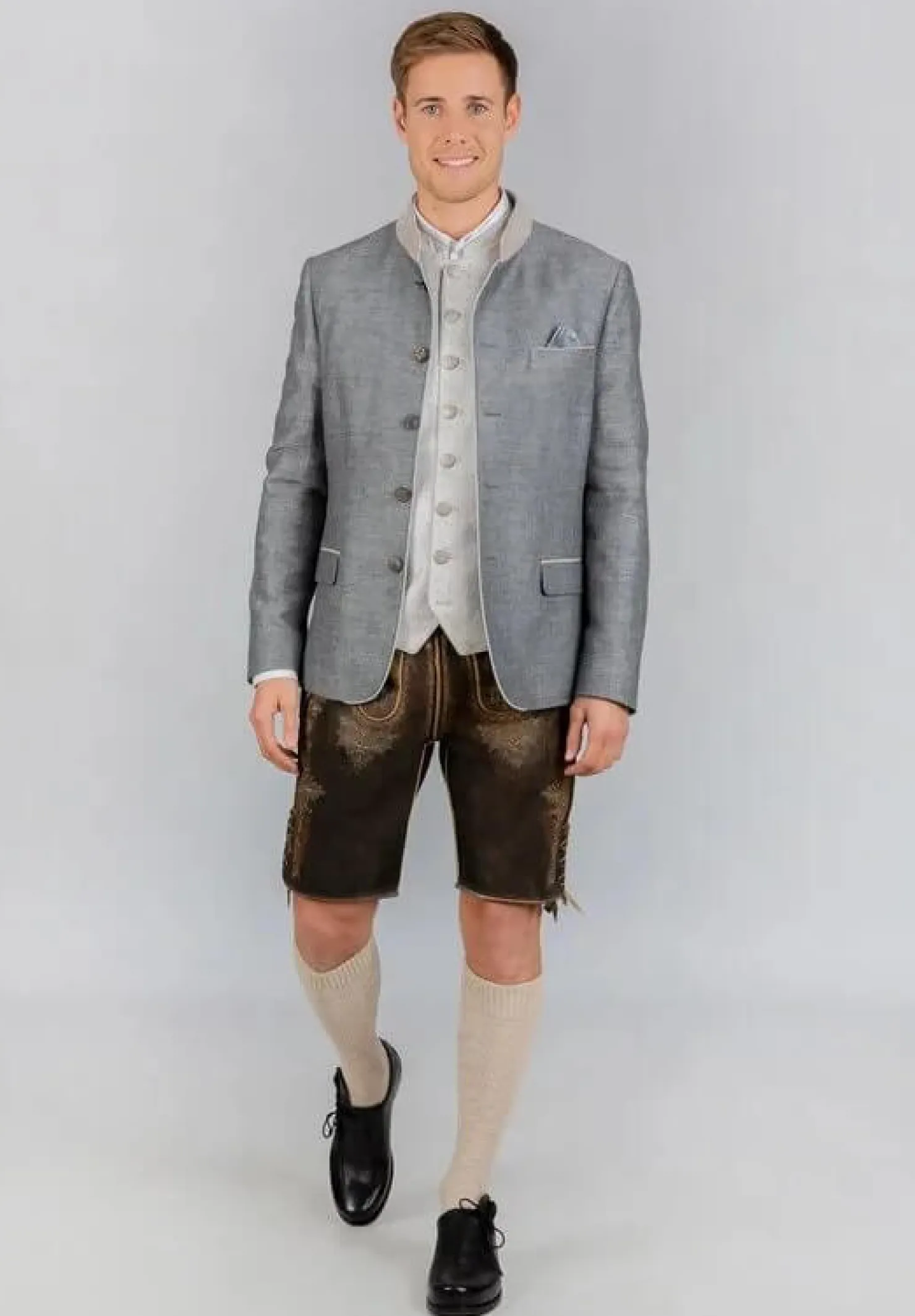 Ein zeitloser Trachtenjanker aus hochwertiger melierter Leinen-Baumwollmischung. Der Janker überzeugt nicht nur durch seine erstklassige Verarbeitung, sondern auch durch einen klassischen, geraden Schnitt, der eine hervorragende Passform und unvergleichlichen Tragekomfort gewährleistet.Der farblich abgestimmte Stehkragen und die Paspel setzen elegante Akzente und unterstreichen das markante Design dieses einzigartigen Kleidungsstücks. Die rustikalen Hornknöpfe vervollständigen das edle Erscheinungsbild auf meisterhafte Weise, verleihen dem Janker Charakter und setzen stilvolle Akzente.
