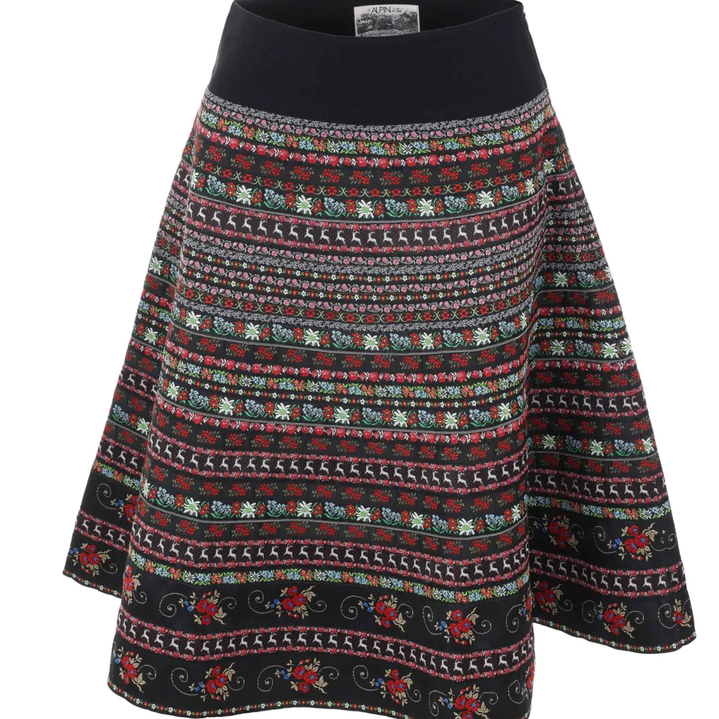 Dieser Baumwollrock ist das ideale Trachtenstück zum Kombinieren mit einem Body oder trachtigem T-Shirt. Gemeinsam bilden sie ein perfekt abgestimmtes Trachtenensemble, das Tradition und Eleganz gekonnt miteinander vereint. Ideal für festliche Anlässe und Veranstaltungen im Trachtenstil. Der Rock ist aus hochwertiger Baumwolle gefertigt, was für angenehmen Tragekomfort und Atmungsaktivität sorgt. In klassischem Schwarz mit bunten Applikationen ergänzt der Rock perfekt das traditionelle Trachtenoutfit.