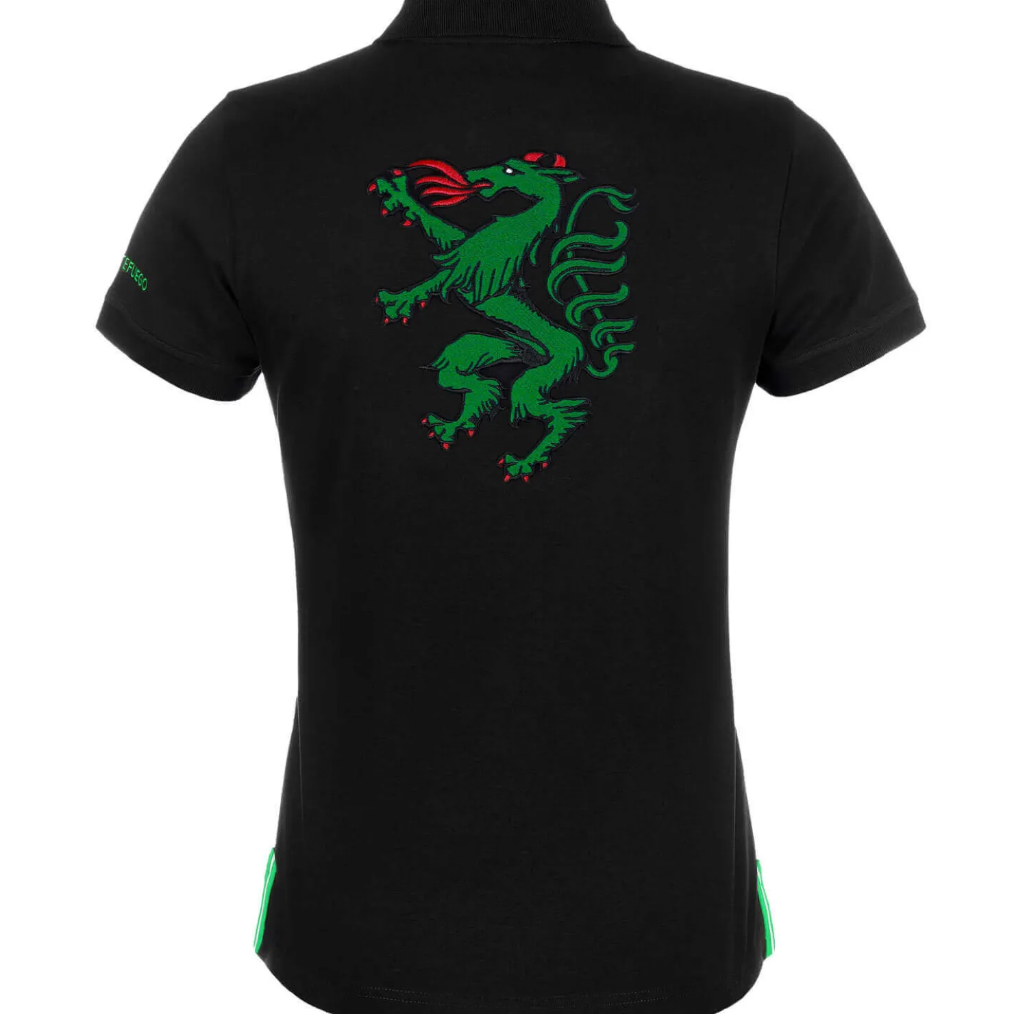 Sportlich geschnittenes Poloshirt „Steiermark“ aus Baumwolle in Schwarz, mit besticktem Steiermark Drachen am Rücken, Knopfleiste vorne und seitliche Schlitze.