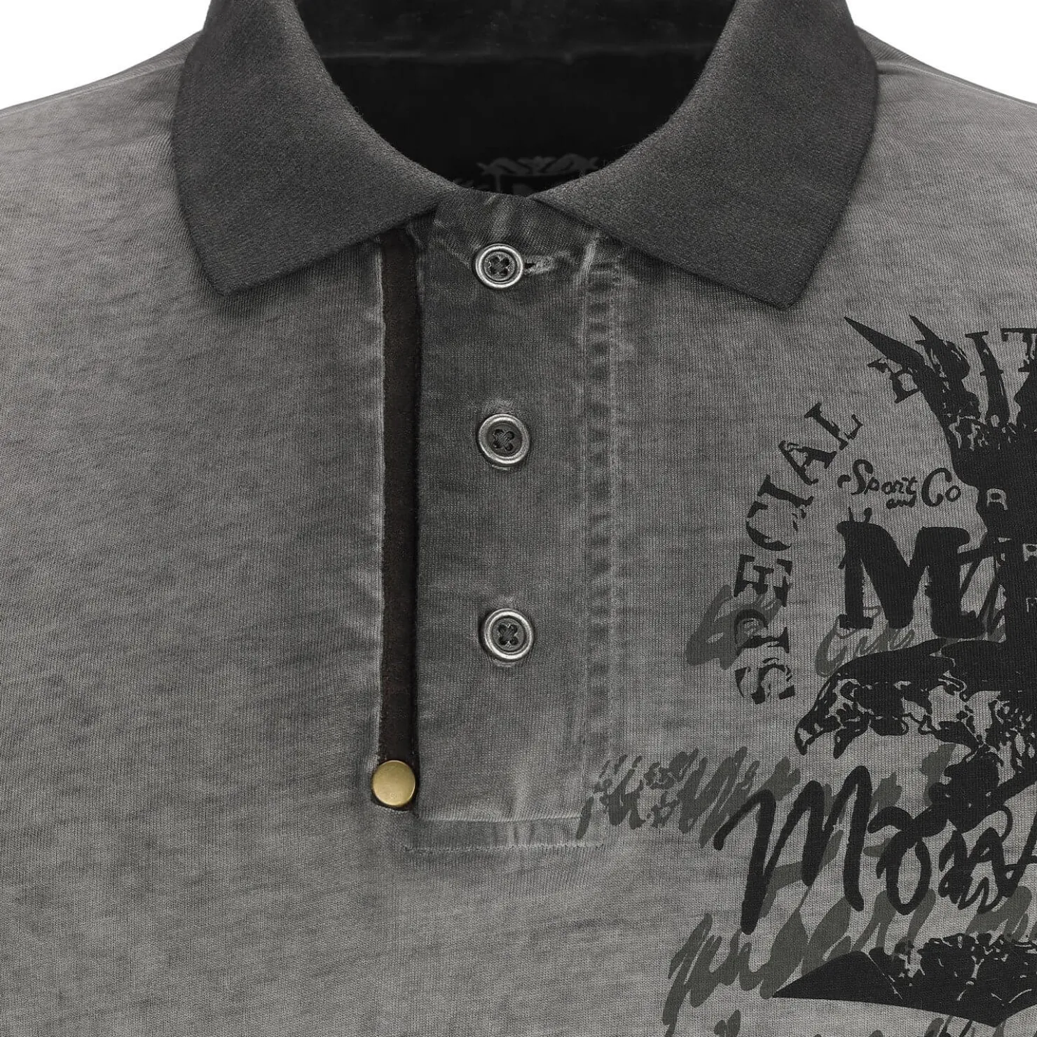 Poloshirt in angesagtem Vintage-Look mit großem Vorder- und Rückenprint.Angenehme leichte Qualität durch 100% Baumwolle.