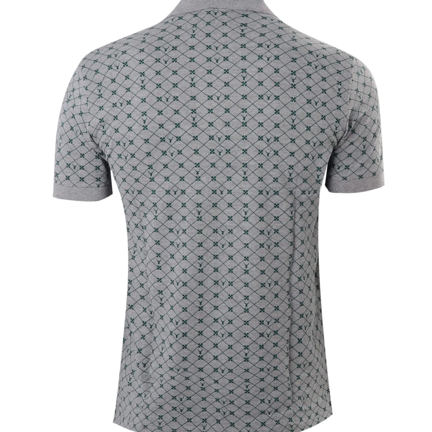 Dieses graue Herren-Poloshirt sieht toll aus mit seinem besonderen Allover-Druck und der Steiermark-Panther-Stickerei auf der Vorderseite. Die drei traditionellen Knöpfe am Kragen geben dem Poloshirt einen besonderen Look. Das Poloshirt hat eine normale Passform, sitzt sehr bequem und ist angenehm auf der Haut. Es ist perfekt für Freizeit und besondere Anlässe.Dieses Poloshirt kombiniert Tradition und modernen Stil und ist ideal für Männer, die gute Qualität und schöne traditionelle Details mögen.