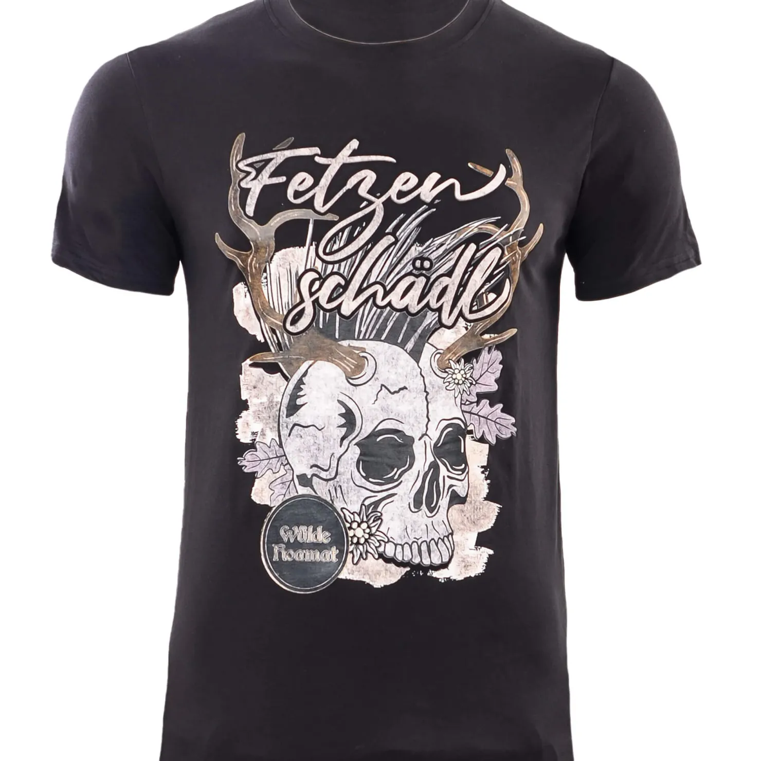 Herren T-Shirt „Fetzenschädl“ lässig kombinierbar mit Jeans oder Lederhose.