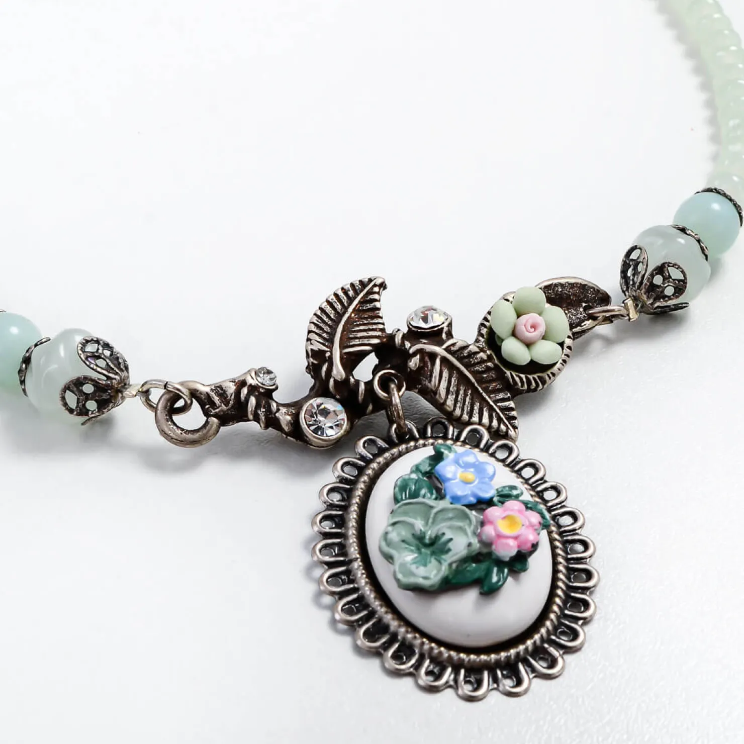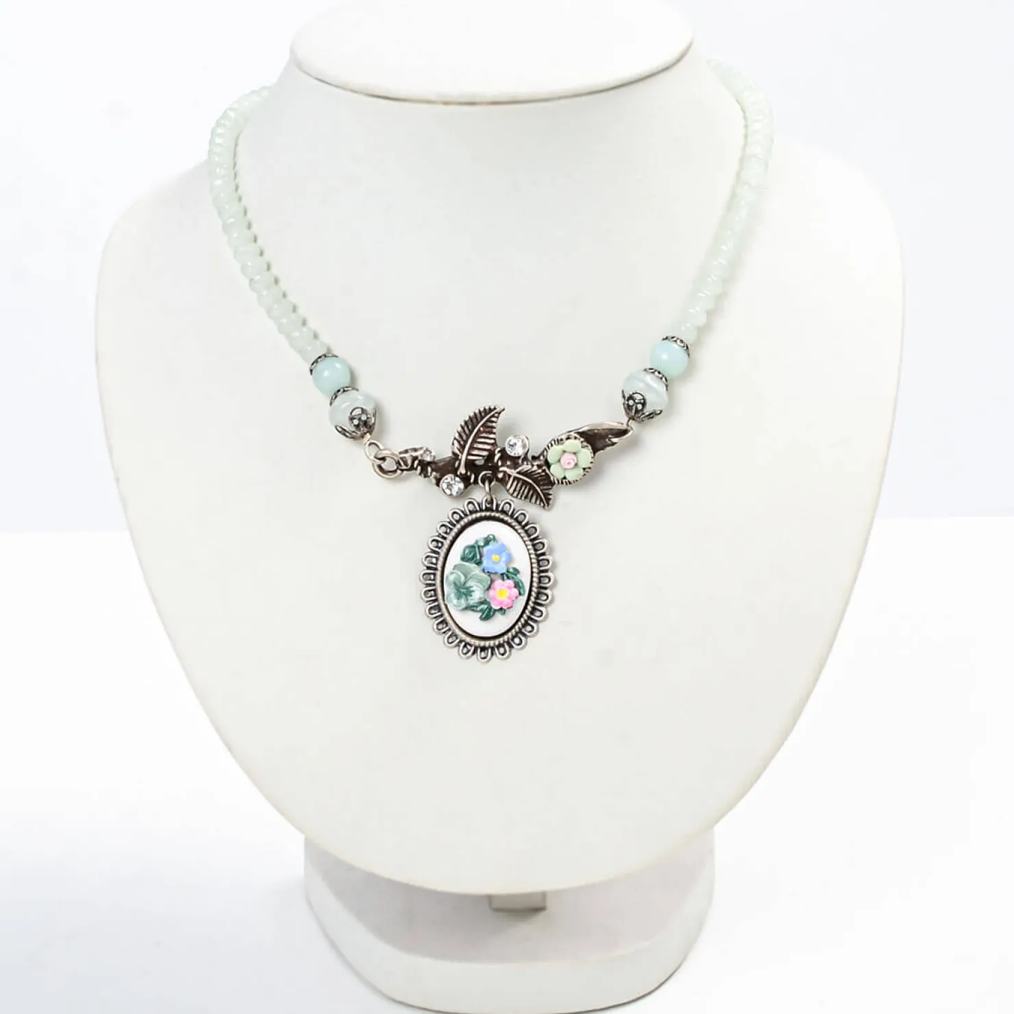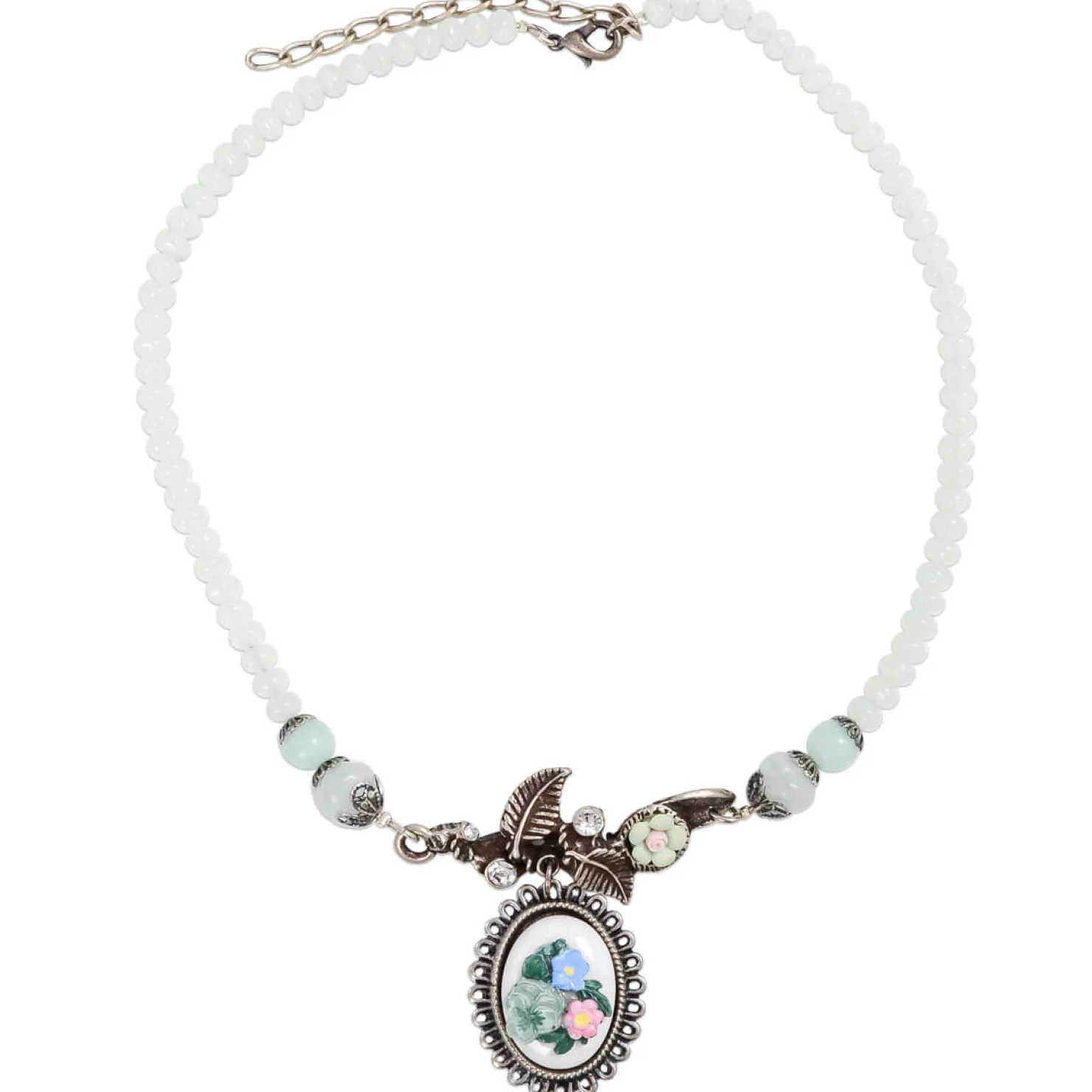 Nostalgische, blumige Vintage-Trachtenkette in zarten Türkistönen.