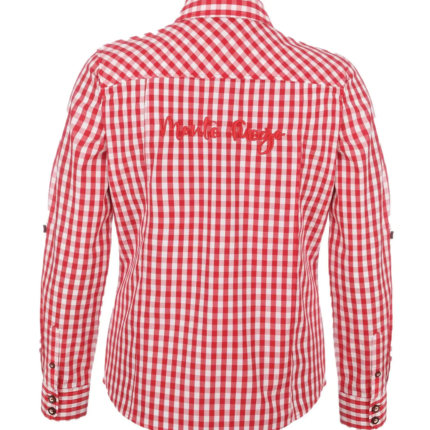 Klassische langarm Damenbluse aus Baumwolle, mit schönen Knöpfen und in taillierter Passform. Die Bluse ist Rot-weiß kariert, und die Ärmellänge kann durch einen Knopf verstellt werden.