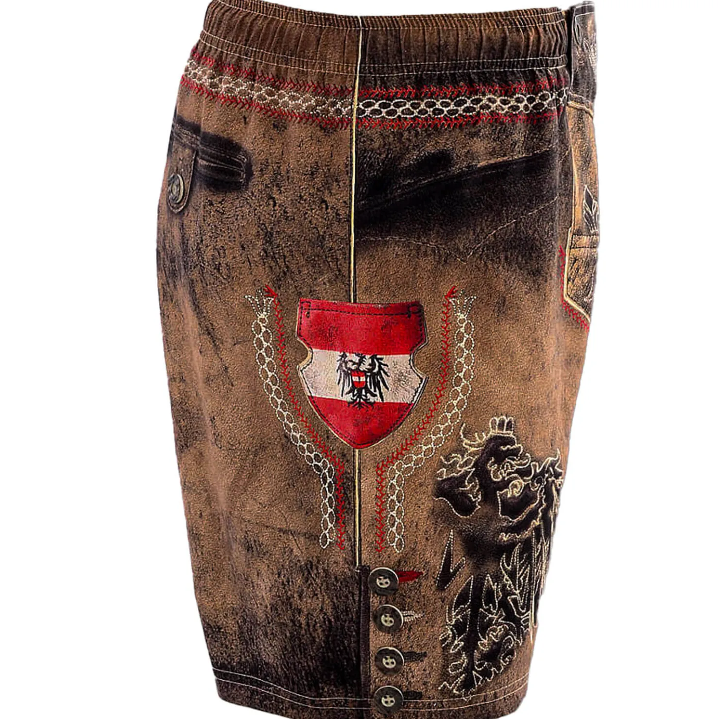 Kinder Trachtenbadehose „Österreich“ mit dekorativem Wappen im aktuellen Österreichdesign.Angedeutete Beintasche mit Österreichischem Wappendesign, elastischer Hosenbund mit Tunnelzug