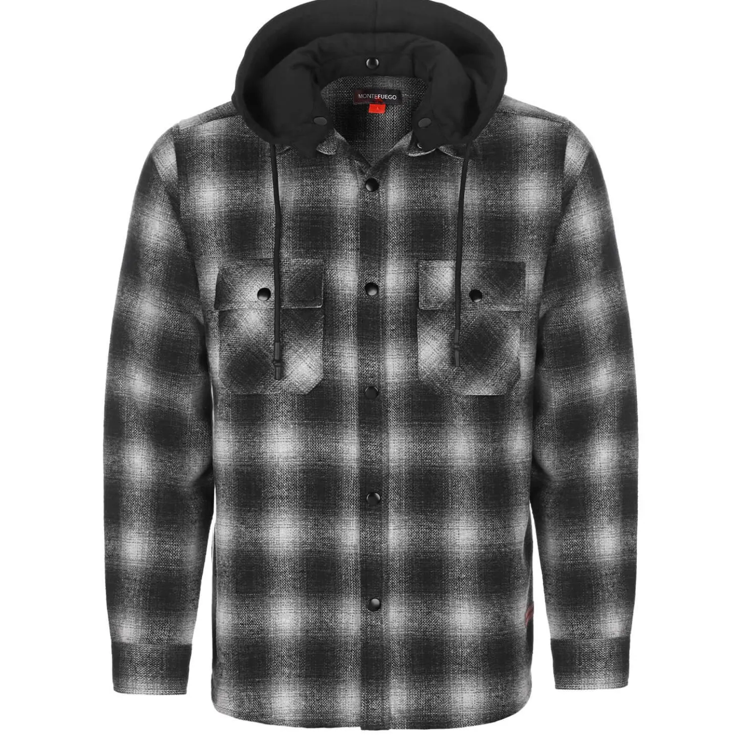 Aus Polyester ist dieses schicke Herren-Flanellhemd gefertigt. Es verfügt über Druckknöpfe und eine abnehmbare Kapuze. Mit zwei Brusttaschen ausgestattet, kann es vielseitig als Hemd oder Jacke getragen werden.