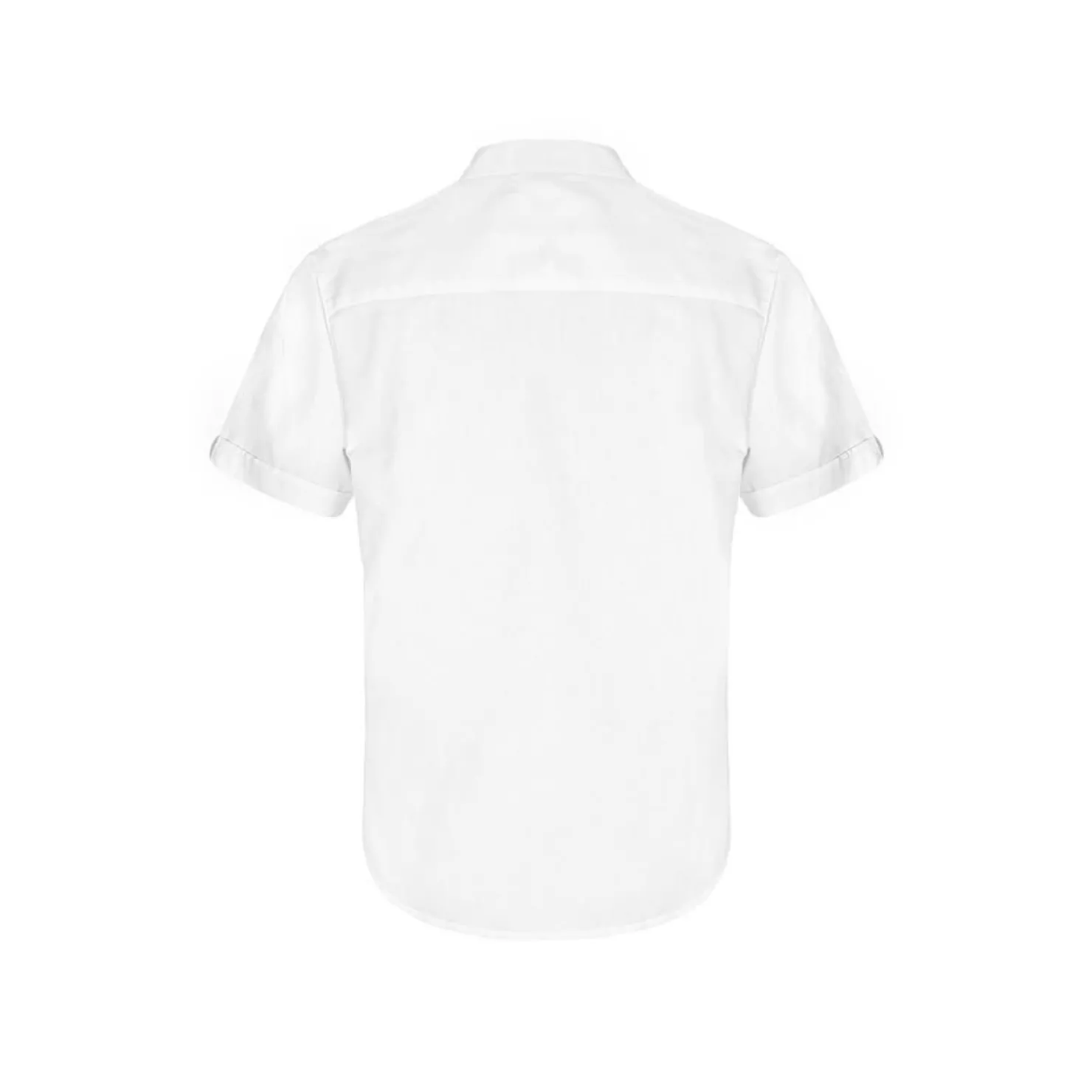 Hergestellt aus weißer Baumwolle, bietet dieses Herrenhemd kurze Ärmel und einen Stehkragen. Feine Falten zieren die Knopfleiste, und die Knöpfe sind in Hirschhornoptik gehalten. Ein Hemd, das mit seinen feinen Details und hochwertigen Materialien beeindruckt.