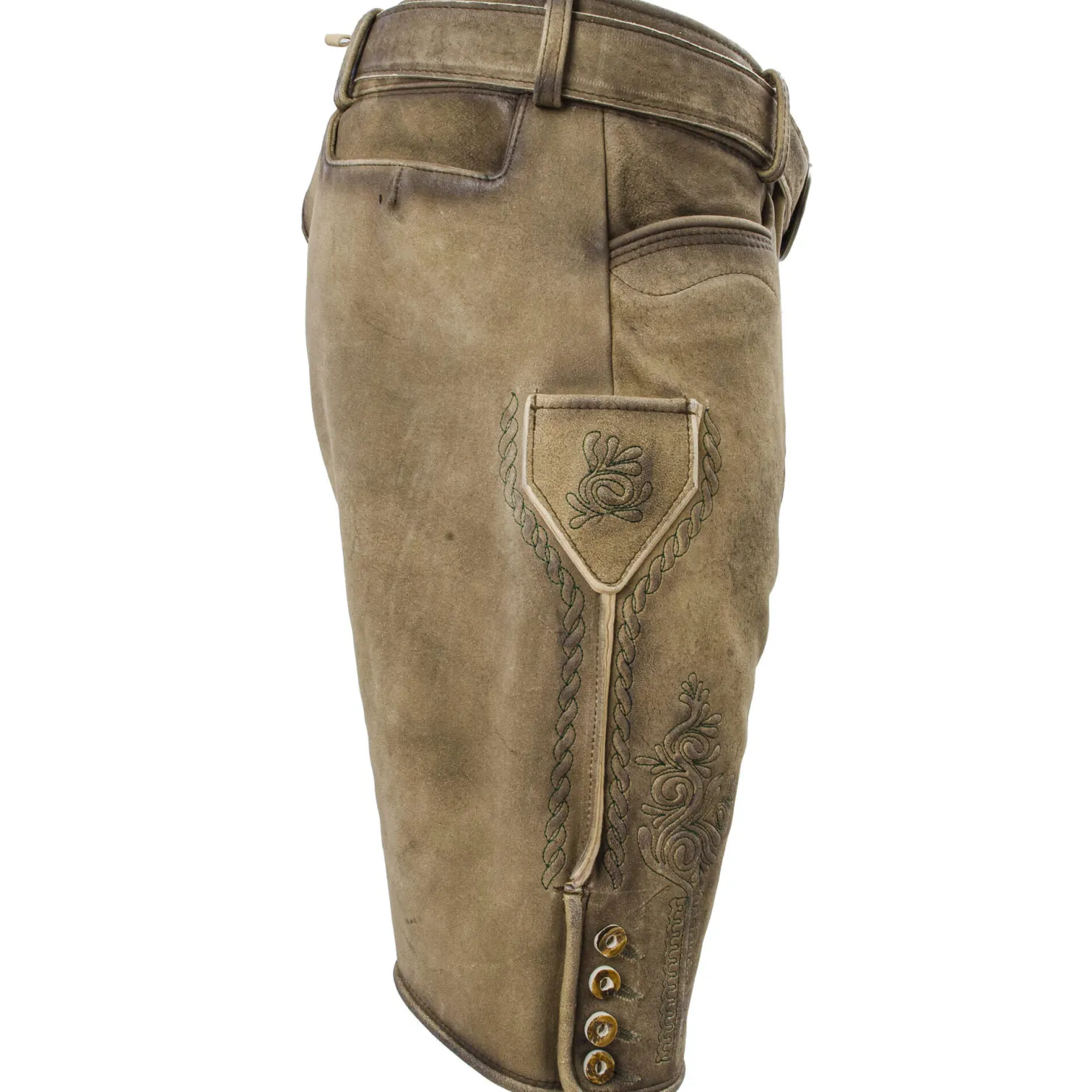 Die Hirschlederhose „Hirschvogel“ ist aus 100% Hirschleder. Hirschleder ist ein sehr hochwertiges Material, das aus der Haut von Hirschen gewonnen wird. Es ist bekannt für seine Langlebigkeit und Robustheit.