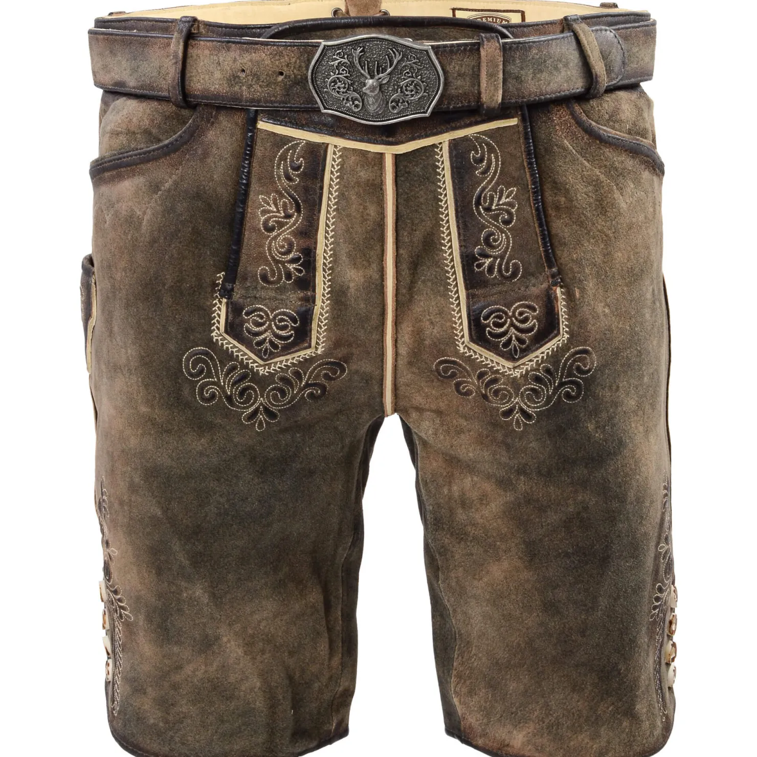 Die kurze Lederhose „Bob 803“ ist ein absoluter Hingucker auf jedem Trachtenfest. Mit ihrem Knopfverschluss in authentischer Hirschhornoptik und den dekorativen Bändern an der Bundmitte hinten versprüht sie traditionellen Charme. Der Trachtengürtel sorgt für zusätzlichen Halt und rundet den Look perfekt ab.Die Hose zeichnet sich durch ihre außergewöhnliche Strukturierung aus und bietet vielseitige Kombinationsmöglichkeiten für verschiedene Trachtenoutfits.