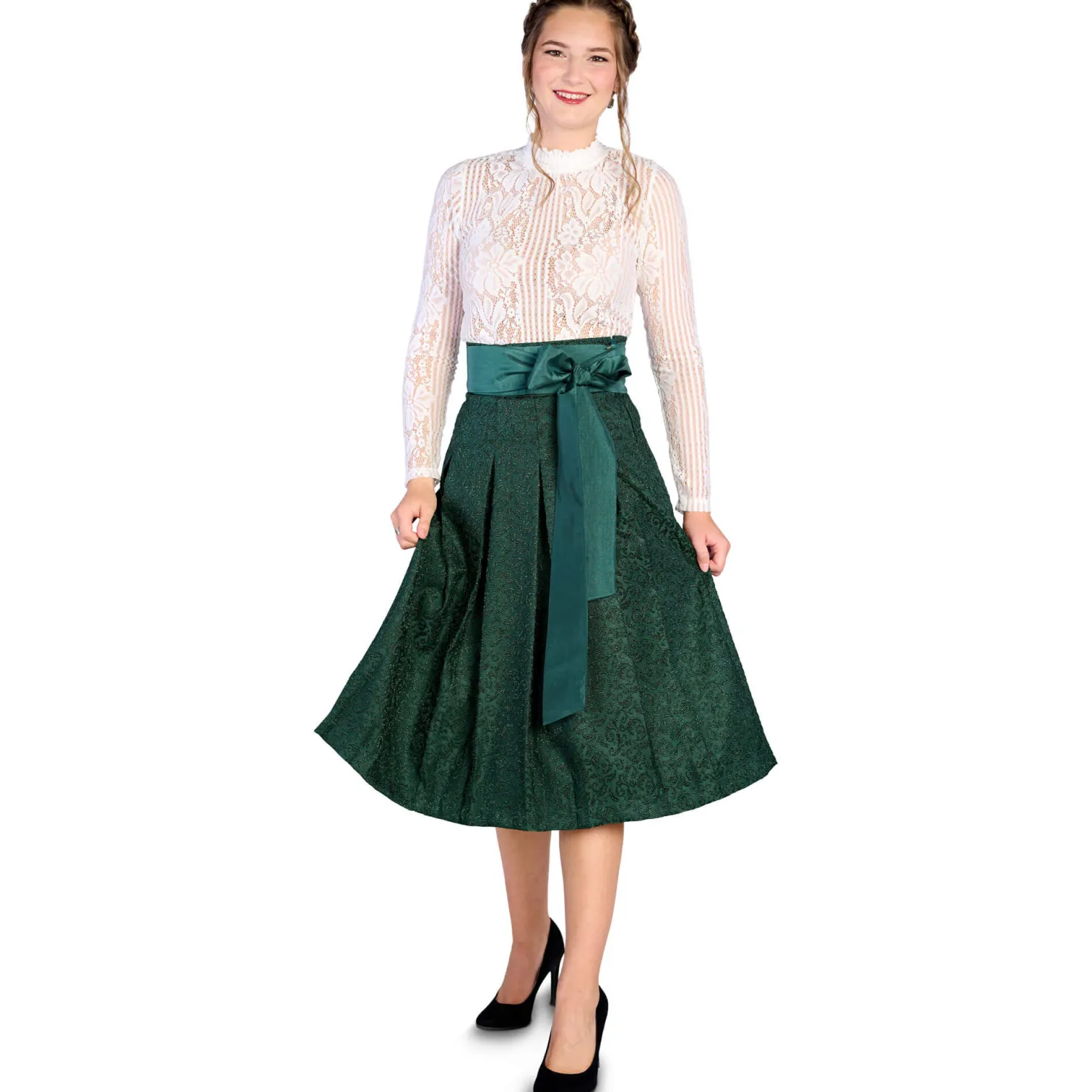 Pflegeleichter Trachtenrock mit Reißverschluss, breiter Schleife und einer Einschubtasche. Der Rock besticht durch ein dezentes, edles Muster und endet knapp unterhalb des Knies, wodurch er eine schmeichelhafte Silhouette zaubert.